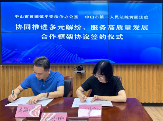 《框架協議》明確了雙方的職責,建立了目標牽引、部門會商、聯合接訪、調解員素能提升、商會培育培優、法官下村居、未成年人司法保護等聯動工作機制,系黃圃鎮與黃圃法庭堅持將非訴訟糾紛解決機制挺在前面,突出源頭預防、前端化解、關口把控重點環節,攥指成拳打造糾紛化解“主陣地”,開啟多元解紛新模式的重要體現。
