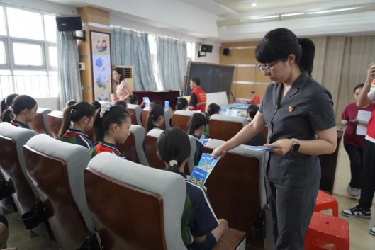 活動前,法院普法志愿者向學生發放了《關愛未成年人》普法小冊子。