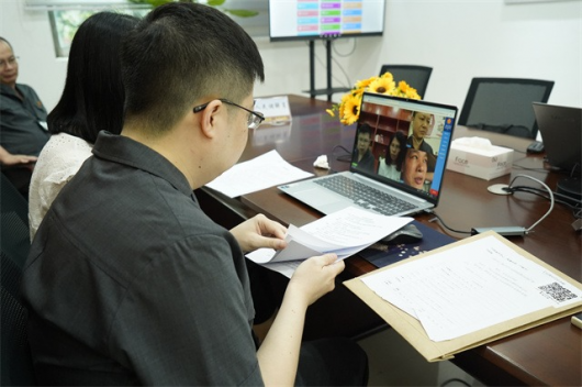 法官、調解員正在進行線上調解。通訊員供圖
