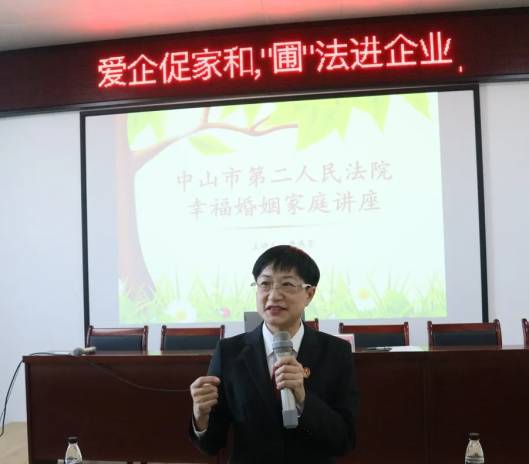 市第二人民法院黃圃人民法庭法官黃燕芳以情感管理與家庭和諧為主題進行分享。她強調了家庭成員間的溝通與理解對于維護家庭和諧的重要性,并分享了實用的情感溝通技巧和沖突解決策略。此外,她還特別談到企業家如何在忙碌的工作之余,找到工作與家庭的平衡點,為聽眾提供了寶貴的建議。